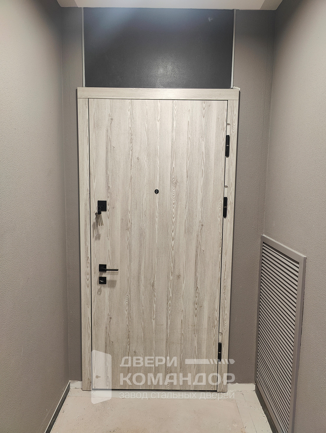 Входная металлическая дверь в офис размером 96x205 см. на заказ с доставкой и установкой по цене 25220руб. Возможно изготовить по индивидуальным размерам. Также возможно боковые вставки и фрамуги в стиле и цвете двери. Изменение цвета отделки и фурнитуры не влияет на стоимость.
