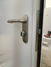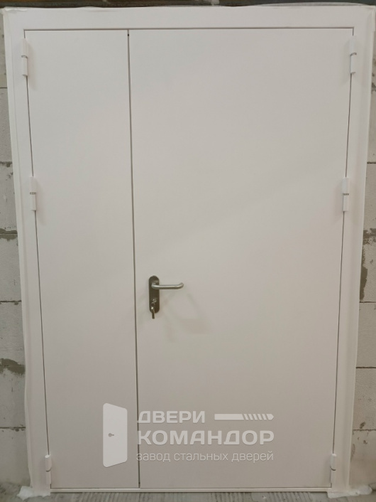 Надёжный вход в общественные и технические зоны, где важны порядок и безопасность. Полуторная конструкция с рабочей створкой и вспомогательной даёт широкое световое, а при необходимости — аккуратно фиксируется шпингалетами сверху и снизу. Белая порошковая шагрень смотрится строго и делово, не боится частых прикосновений, не выгорает и легко отмывается после ремонта. По периметру — уплотнение и противопожарная лента, которая при высокой температуре расширяется, перекрывая дым и щели. На полотне установлен доводчик: дверь закрывается плавно, без хлопков. Рычажная фурнитура из нержавеющей стали выдерживает поток людей. Решение для подъездов, лестничных клеток, коридоров бизнес-центров, складских и сервисных помещений, а также для хозяйственных зон частного дома.