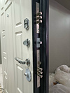 Эта дверь создана для квартиры, где важны тишина и аккуратный порядок. Снаружи — тёмная МДФ-панель с классической кассетной фрезеровкой: благородная текстура древесины смотрится солидно и не подчёркивает следы касаний. Внутри — светлая панель с тем же рельефом: прихожая кажется просторнее, а гладкое покрытие легко протирать. В конструкции двери Консул New Дверей Регионов — два разнесённых замка и плотный притвор; уплотнители глушат шумы с площадки, полотно закрывается мягко и герметично. На кромке виден мощный запорный узел с несколькими ригелями, изнутри — удобная поворотная задвижка для быстрого запирания без ключа. Хромированная фурнитура с уверенным ходом дополняет строгий внешний вид, а МДФ устойчив к мелким царапинам и ежедневной уборке — практично с обеих сторон.
