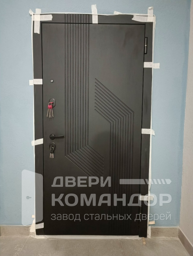Дверь рассчитана на квартиру и сразу задаёт тон подъездному холлу: снаружи — глубокий графит с рельефной геометрией, матовая текстура скрывает отпечатки и мелкие следы, выглядит строго и современно. Внутри — белая МДФ-панель с вертикальным зеркалом: прихожая кажется просторнее, сборы перед выходом занимают меньше времени. В двери Протея зеркало эмалит белый Феррони установлены два разнесённых замка и глазок; плотный притвор с уплотнителями даёт мягкое закрывание и глушит звуки с лестничной площадки. МДФ с эмалевым покрытием стойко переносит ежедневную уборку, не желтеет и не боится мелких царапин, а ровные кромки легко протирать. Чёрная фурнитура тактильно приятна и гармонирует с внешним полотном — эффектный контраст, который работает каждый раз, когда вы берёте ручку в руке.