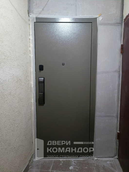 Дверь для квартиры на лестничной площадке с уверенным современным характером: снаружи — прочное порошковое покрытие графитового оттенка, устойчивое к мелким ударам и не боящееся ежедневных касаний; внутренняя сторона — белая МДФ с лаконичной геометрией фрезеровки, которая легко подружится с минималистичным или сканди-интерьером. Электронный замок Kaadas добавляет удобство: вход по коду или карте без поисков ключей, при этом массивная ручка работает мягко и предсказуемо. В комплектации дверью Stardis Comfort с электронным замком Kaadas аккуратно установлен глазок, а строгая черная фурнитура подчеркивает графику полотна. По желанию можно выполнить наличники и доборы в цвет, а также предусмотреть интеграцию с видеодомофоном.