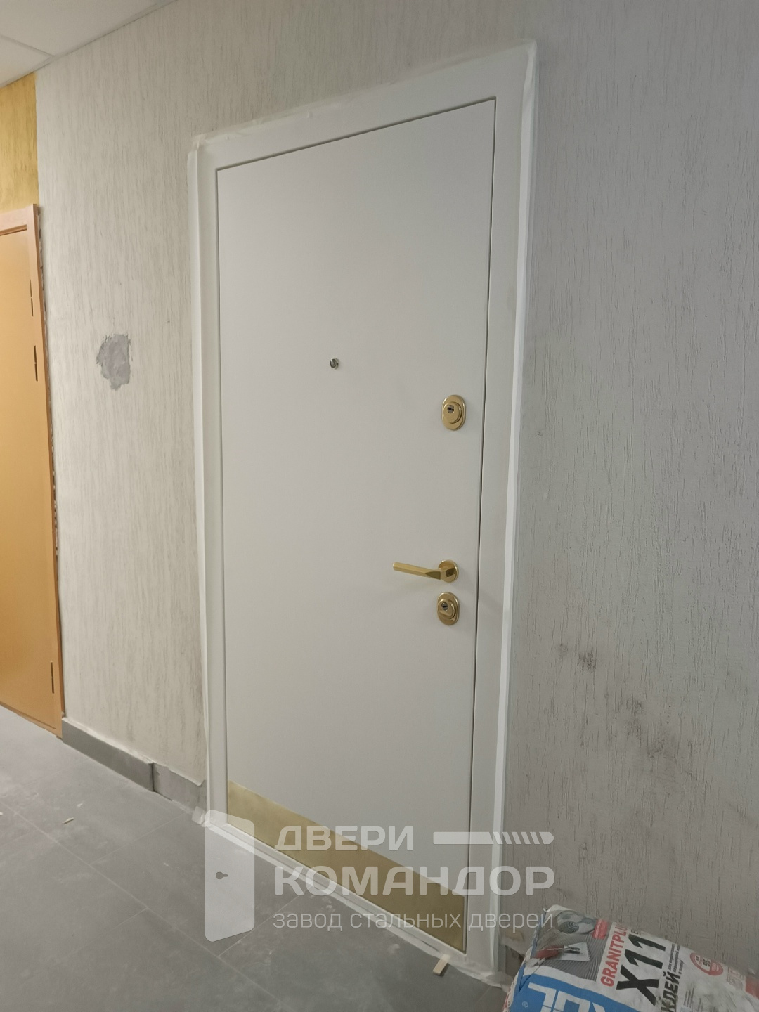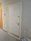 Stardis Comfort — спокойная, аккуратная входная дверь для квартиры: снаружи чисто-белая плита, подчеркнутая латунной защитной планкой внизу и теплым оттенком фурнитуры. Внутри сейчас установлена временная МДФ-панель — практичное решение на период ремонта: не жалко, легко протирать, а позже меняется на финишную под интерьер без переделок. МДФ с обеих сторон дает ровную геометрию и гасит звук, а плотный контур уплотнения по периметру помогает тишине подъезда остаться за дверью. Минималистичный дизайн без лишних линий, аккуратный глазок, круглая броненакладка и прямоугольная ручка образуют спокойный ансамбль: белая плоскость, теплый металл, строгие пропорции. Для тех, кто хочет въехать сейчас, а «косметику» доделать потом — разумный и эстетичный порядок действий.