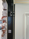 Дверь для квартиры и подъезда, где важны тишина в прихожей и аккуратный вид со стороны лестничной клетки. Снаружи — глубокий графит с рельефной горизонтальной 3D-фрезеровкой: скрывает следы касаний и смотрится солидно. Внутри — светлая МДФ-панель с классическими картушами, визуально расширяет коридор и легко протирается. По фото видно два разносистемных замка, глазок и плотная посадка полотна — закрывается мягко, без щелей и звона. У стардис комфорта приятно продуман контраст: чёрная внешняя фурнитура и тёплая бронза внутри, а по торцу — фирменное тиснение бренда. Материалы рассчитаны на ежедневную эксплуатацию: не выгорают, устойчивы к мелким царапинам и бытововой химии.