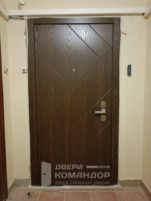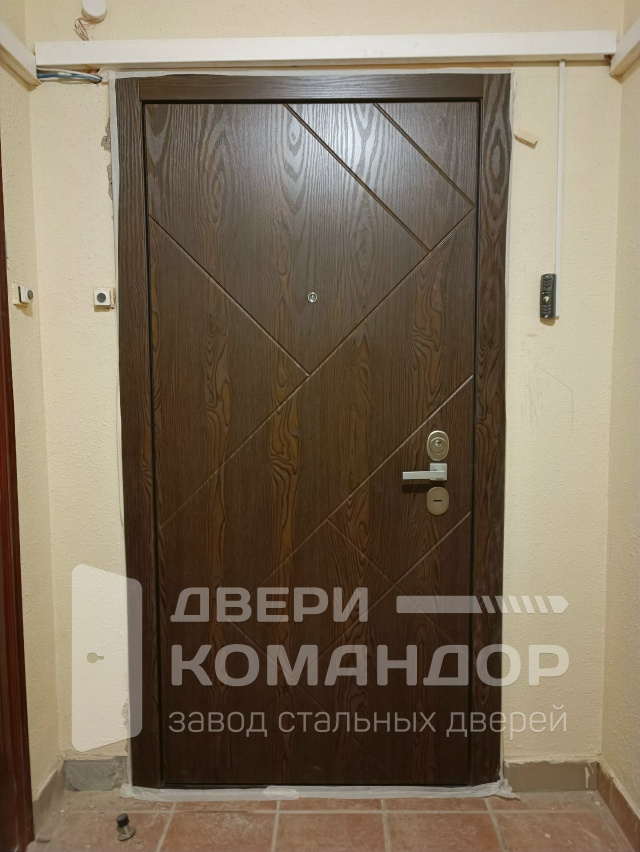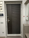 Stardis Expert — надёжная входная дверь для квартиры или тёплого подъезда, где ценят и защиту, и чистый интерьер. С наружной стороны — тёплый древесный декор МДФ с диагональной фрезеровкой: рисунок смотрится живо, скрывает случайные царапины и не боится частых касаний. Изнутри — графитовая панель МДФ с тонкими горизонтальными ламелями: практичная поверхность, на которой меньше видны следы эксплуатации и которую легко протирать. Двухсистемный замок Mottura с девиаторами запирает полотно в нескольких точках, разнесённые броненакладки и удобная внутренняя вертушка добавляют контроля, по периметру — уплотнение для мягкого хода. На петлевой стороне — противосъёмные ригели, а в полотне установлен глазок. Временная панель решает вопрос ремонта: не жалко закрывать проём до финальной отделки, а потом аккуратно заменить на «чистовую».