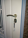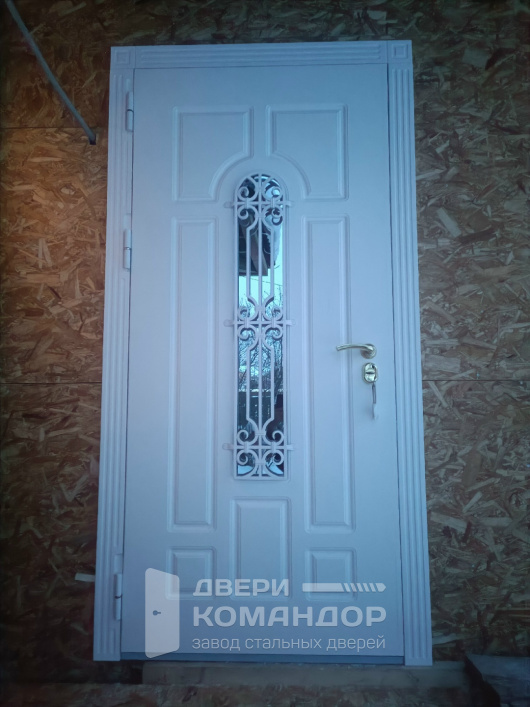 Уличная дверь для частного дома, которая встречает гостя светлым классическим фасадом и держит тепло внутри. Узкое арочное остекление со стеклопакетом прикрыто ажурной ковкой — видно, кто у ворот, а безопасность на месте. Теплоизоляция обеспечена терморазрывом: полотно и короб не тянут холод в дом, на внутренней панели не образуется иней и конденсат. С обеих сторон — МДФ с влагостойким покрытием: фактура «под дерево» не царапается ключами и спокойно переносит солнце, перепады и сезонную влажность под навесом. Порог из нержавейки не боится обуви и реагентов, сохраняет аккуратный вид. Фурнитура работает мягко, внутри предусмотрена поворотная защёлка на случай «закрыться одним движением». Притвор плотный, по петлевой стороне установлены противосъёмные штыри — дверь сидит монолитно и надёжно.