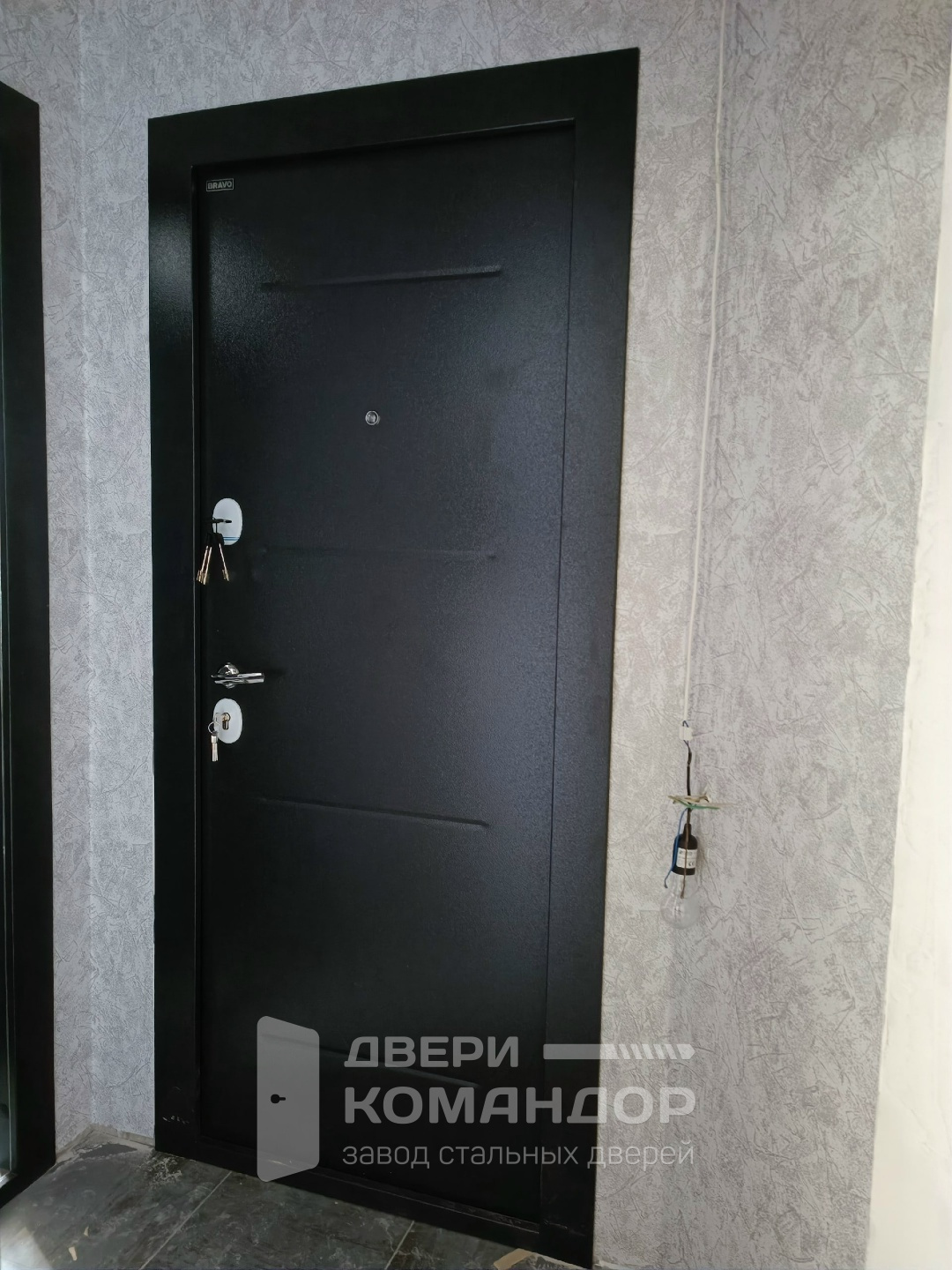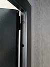 Эта дверь создана для квартиры: открывается внутрь, не цепляет общий коридор и ведёт себя тихо и предсказуемо. Снаружи — молотковое напыление глубокого чёрного оттенка: фактура скрывает мелкие следы эксплуатации, стойко переносит подъездную «погоду» и не требует щепетильного ухода. Внутри — МДФ светлого бетона с тонкими горизонтальными фрезами: визуально расширяет прихожую, легко протирается, не боится частых прикосновений. Нравится аккуратная симметрия фурнитуры, глазок и пара независимых замков — всё по делу, без показной агрессии. В описании у Bravo R-2 внутреннего открывания важнее другое: честная, практичная дверь, которую хочется использовать каждый день.