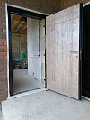 Эта дверь создана для частного дома и уличной установки: тёплый контур и раздельные металлоконструкции исключают мостик холода, так что зимой не «плачут» откосы и не тянет от полотна. Снаружи — износостойкая МДФ-панель с фактурой под камень/бетон: не боится ежедневных прикосновений, легко оттирает следы и не выгорает. Внутри — спокойная древесная МДФ, которая визуально успокаивает прихожую и гармонирует с мебелью. В заказной металлической входной двери терморазрыв чётко работает на комфорт: меньше конденсата, стабильная тишина и предсказуемое закрывание. Короб и уплотнение собраны без зазоров, наличники аккуратно обрамляют проём. По желанию интегрируем видеодомофон и подберём фурнитуру в едином стиле.